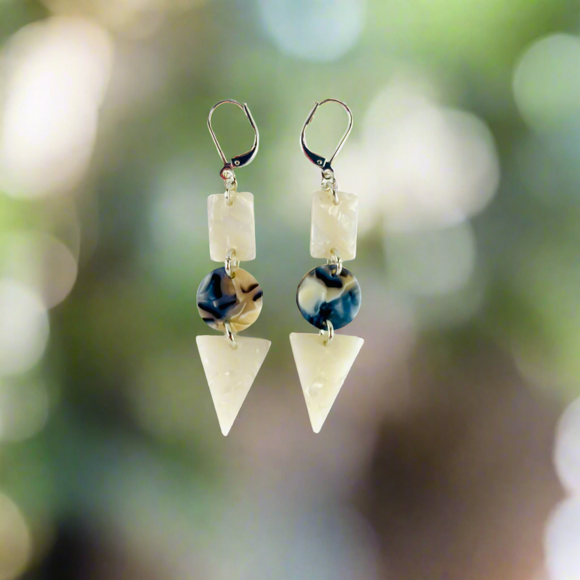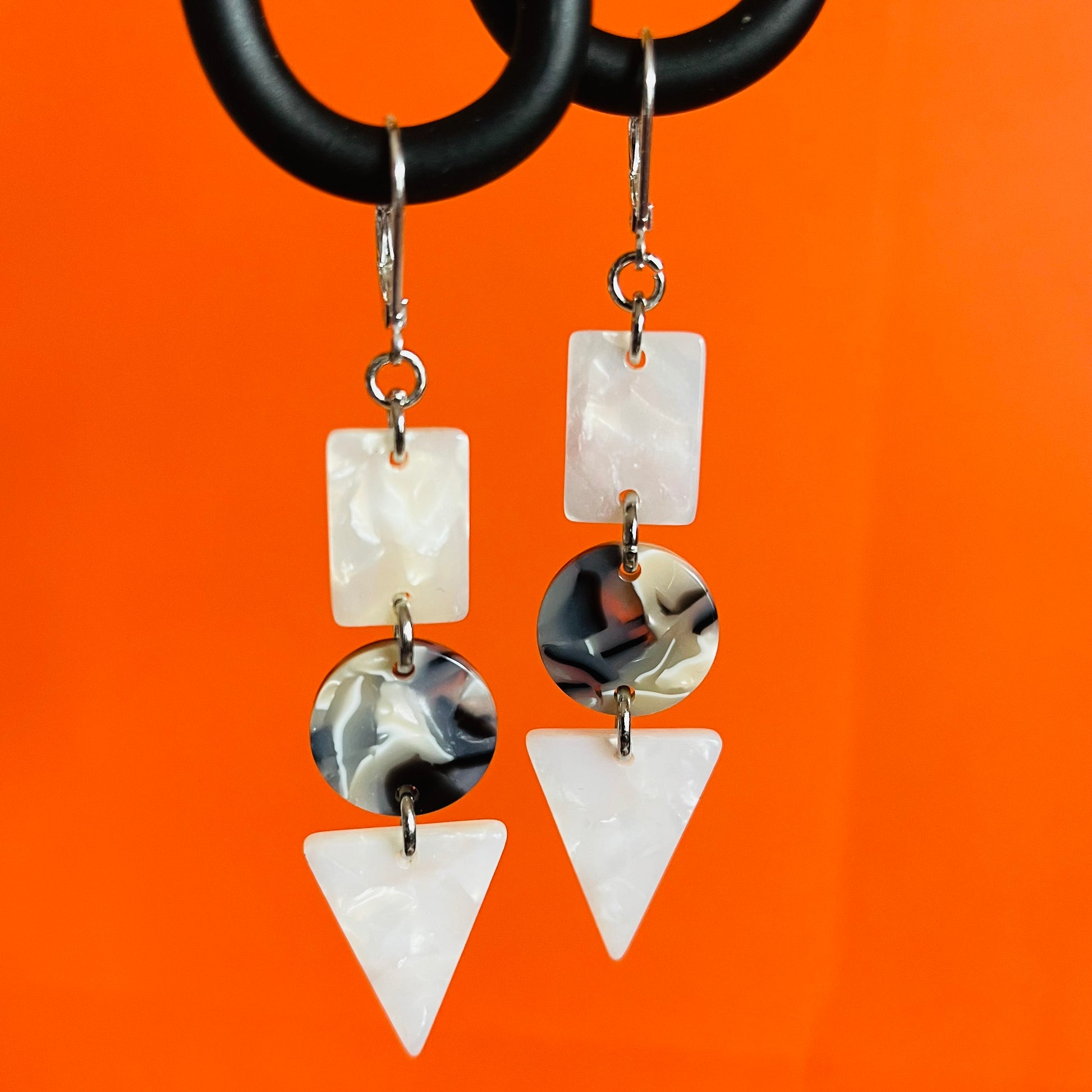 White Pearl square, Black Pearl Acetate circle and White pearl triangle