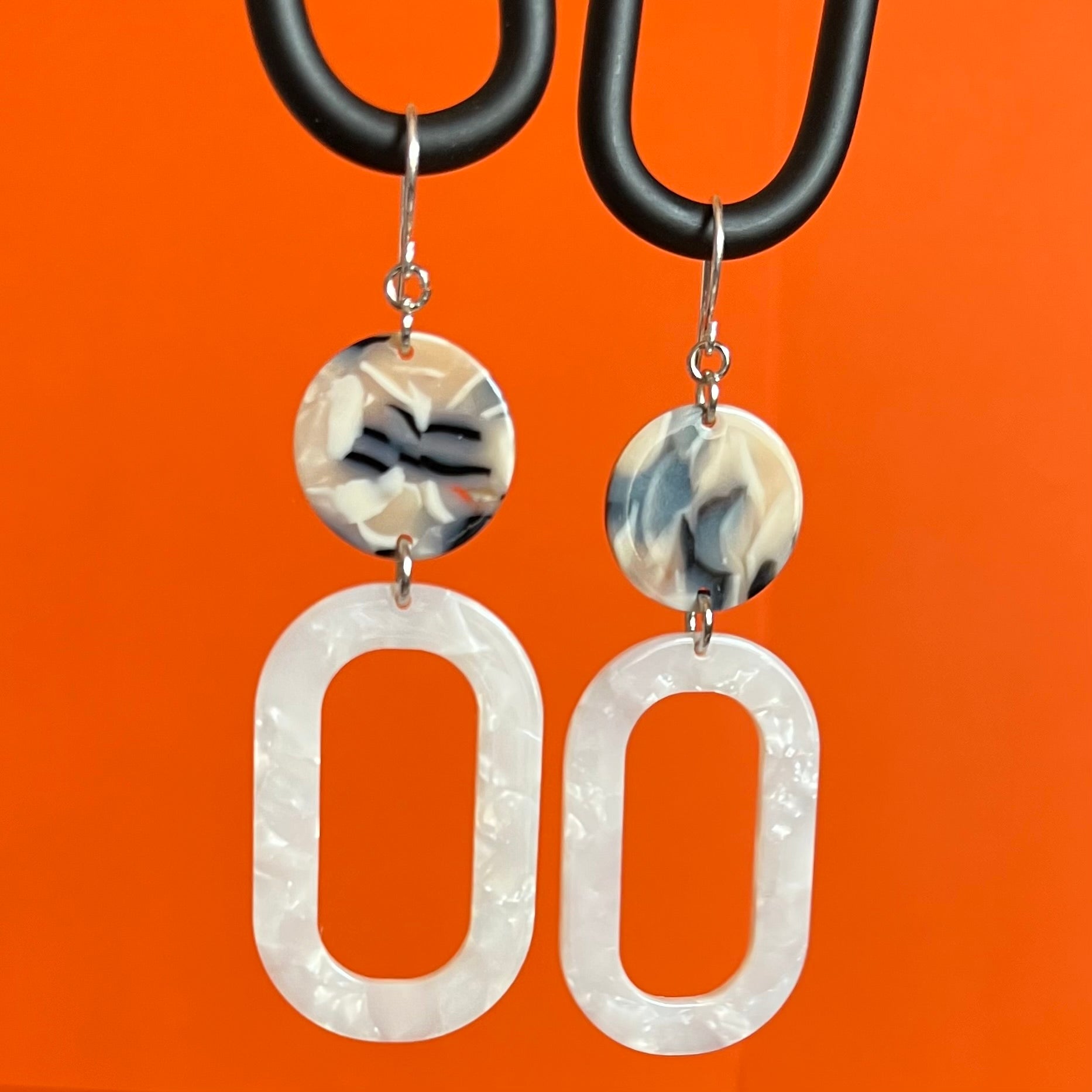Nickle size Black Pearl Acetate circle with White Pearl oval.
